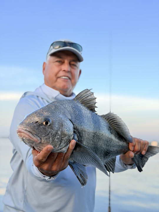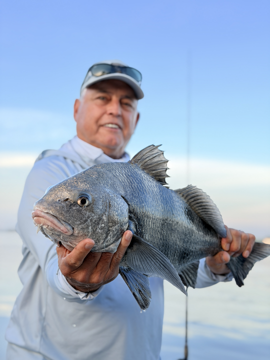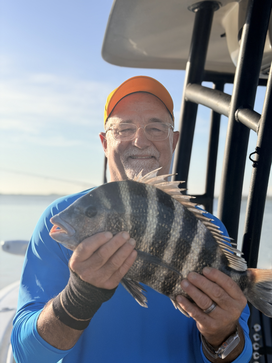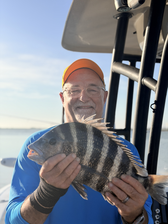 Nice sheepshead caught using light tackle techniques in partly cloudy conditions